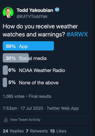 The KATV Mobile Weather App includes. Future radar to see where severe weather is headed. KATV Channel 7 has been the number one weather provider in Arkansas for decades.